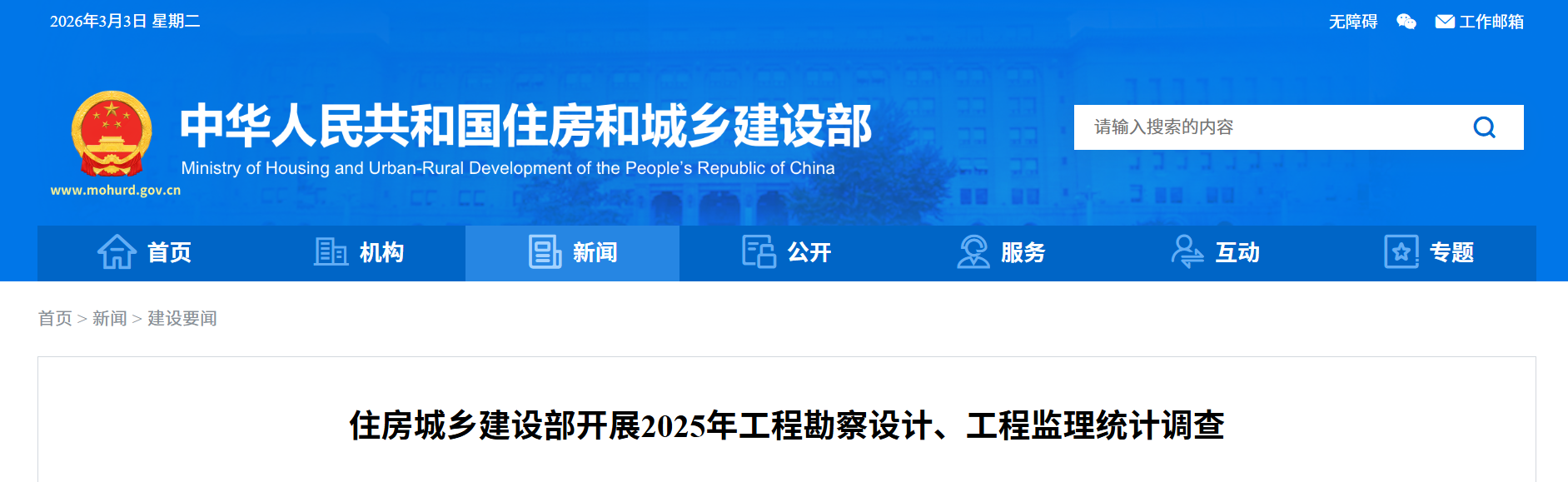 住房城乡建设部开展2025年工程勘察设计、工程监理统计调查